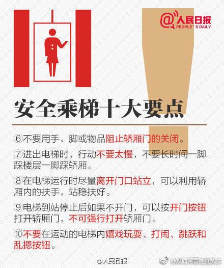 最近,一段叫做"电梯电梯等等我"的舞蹈视频在短视频平台上热播,很多网友也纷纷模仿。但你是否知道,反复按开关门按钮、超时开门等人其实暗藏危险?万一电梯突然故障,怎么自救?了解关于电梯的安全知识,关键时或许能救你一命!戳图学习转发扩散!
